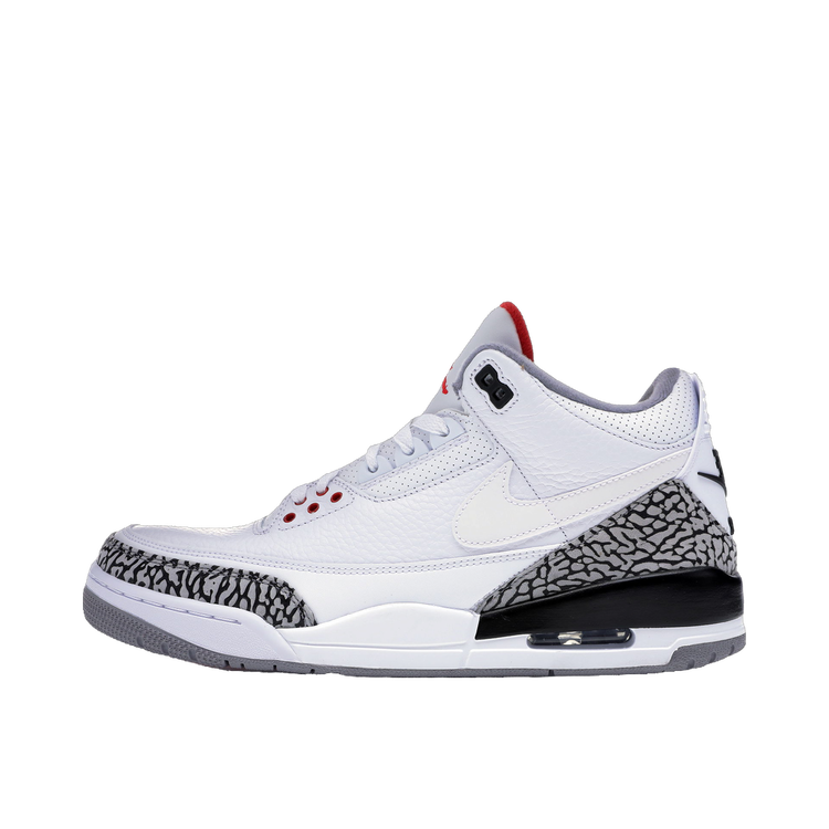 Topánky majú biely kožený zvršok s reflexným strieborným swooshom, čo je prvok, ktorý bol z finálnej verzie klasického modelu vyradený. Skutočné kúzlo sa však skrýva vo vnútri: logo "JTH" na jazyku a tajný odkaz na zadnej strane, ktorý znie "FAME IS A LIE" a "STRESS IS REAL". Tento pár bol vydaný v aplikácii SNKRS hneď po skončení prehliadky a hádate správne, bol vypredaný v priebehu niekoľkých minút. Teraz patrí k najvzácnejším a najvyhľadávanejším Air Jordan 3 vôbec a ich hodnota pri ďalšom predaji dosahuje až 3000 dolárov.